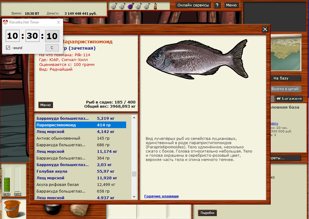 Киты. Синий и Финвал были разловлены ранее. Сейвала пришлось разлавливать. Нашел две точки где хоть как-то клевал, в одной брал только он, но не квестового веса, во второй в перемешку с Малым, но зато попадались квестового веса. Выбрал вторую и отловил их за 8 часов реала. Сейвал - Гренландия: Черная бездна, Мясо шашеня, 19,54 (19,55) инд каты, нахлыст, утро и вечер Кит синий - Кроноцкий залив: С видом на вулкан, Креветка, 35.18 ката-леска, нахлыст, утро и вечер Финвал - Побережье Чили: Северный свал, Мясо рапаны, 21.97 инд. уды, нахлыст, вечер-утро Анчоус и сардинелла. Анчоус Харденберга 321 грамм. Поймана на ЮАР: Северная бухта, Крабовое мясо, 2,92 ящик, нахлыст Сардинелла желтополосая 109 грамм. Поймана на ЮАР: Южная гавань, Икра, 4.23 ящик, дно