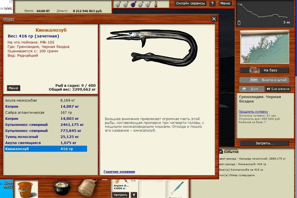 Кинжалозуб 416 грамм. Поймана на Гренландия: Черная бездна, Pilk-105 м/м, 31,18 леска. Спин с кракеном, под кровь гребня, отвар удачи и СУ
