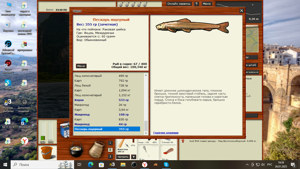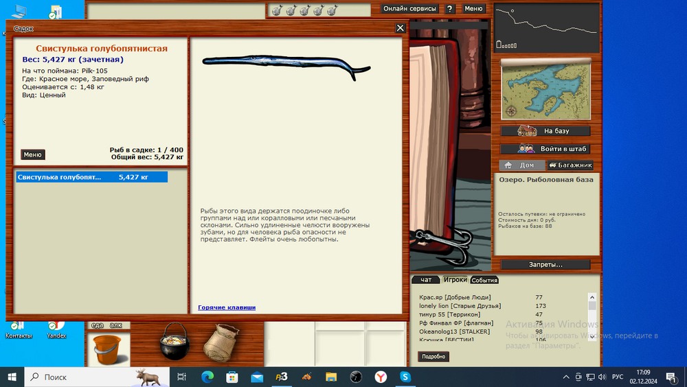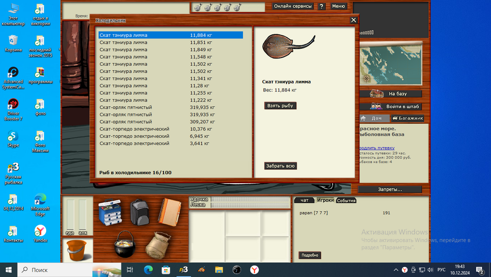 Всем привет! Взял задание промысла Красного моря караси,перед этим проштудировал весь форум,выписал все уловистые ямки с чёрным проблем не возникло взял на ура,но вот барабан,просидев три дня,без вылозно. Поймав 2 штуки,из 414 морских червей осталось 359,бросил я это задание. Наверное в редкие перевели. Решил пока до 1000 червей не наловлю ,задание промысла брать не буду. А ведь оставалось караси и групперы, и всё. Досадно.