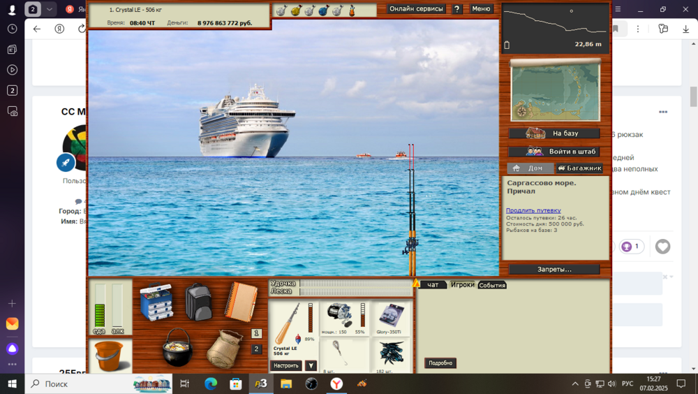 Всем привет! Сегодня прошёл Марлинов,Саргассово море, Дальние воды, заброс над рюкзаком,конкретной глубины заброса не было, куда попаду на угад, выловил всех без проблем,Waterplan-5 Б/Б. Утро с 4 до 9 и вечер с 19 до 23. За 4 игродня. Первый сервер.