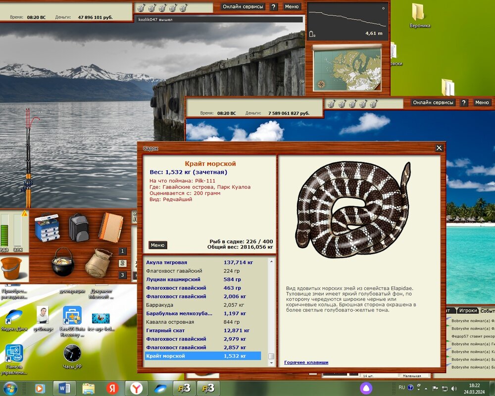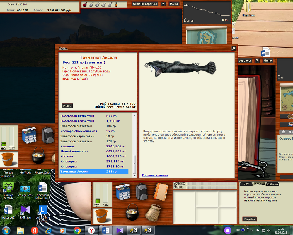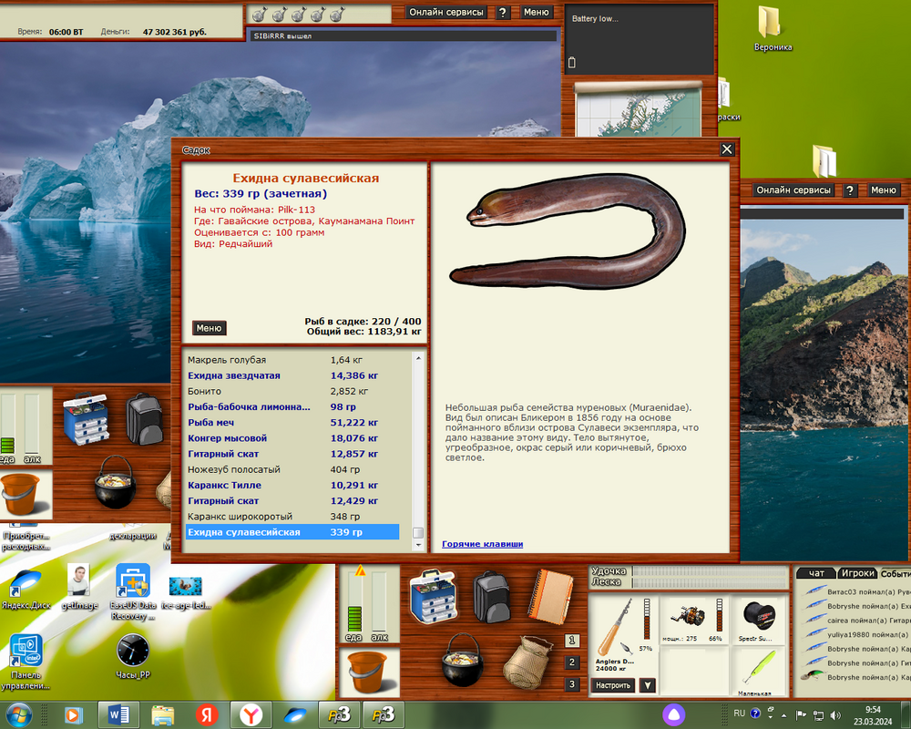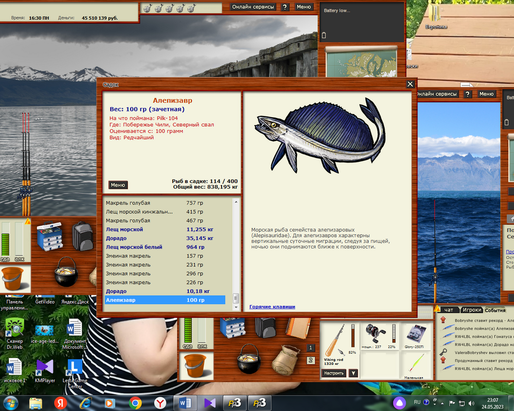 Огромное спасибо Сергею, думаю, от огромного количества игроков, за то, что он делится информацией о вылове редких видов рыб. Все там понятно