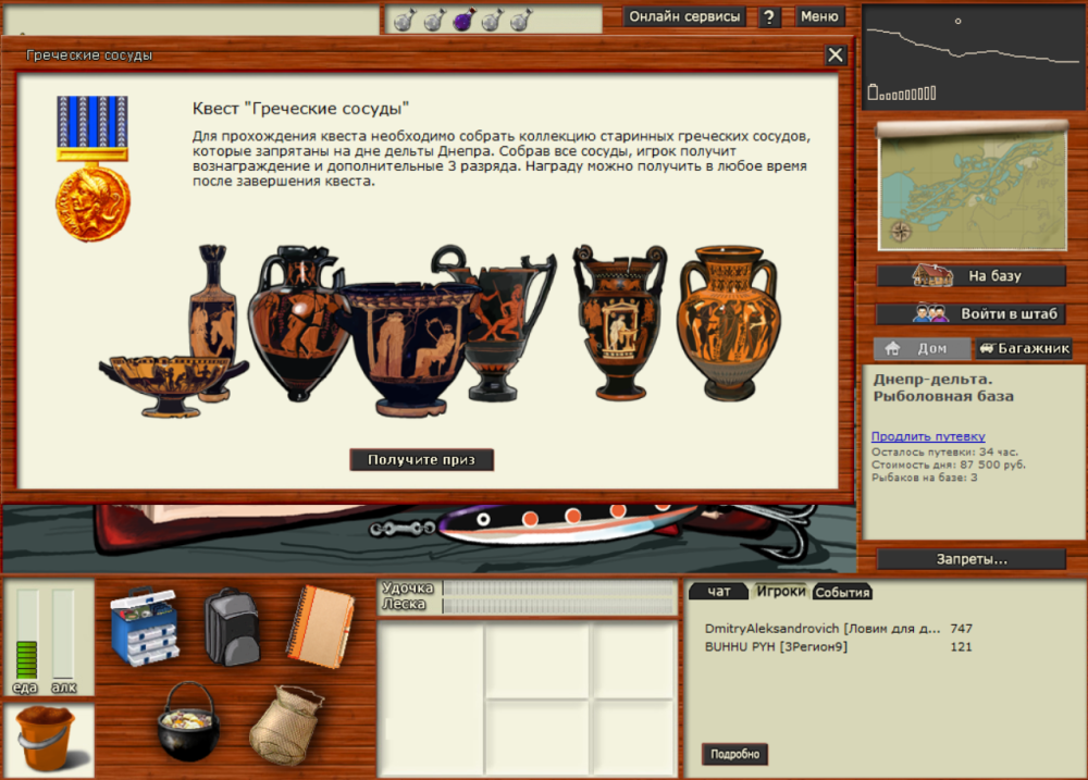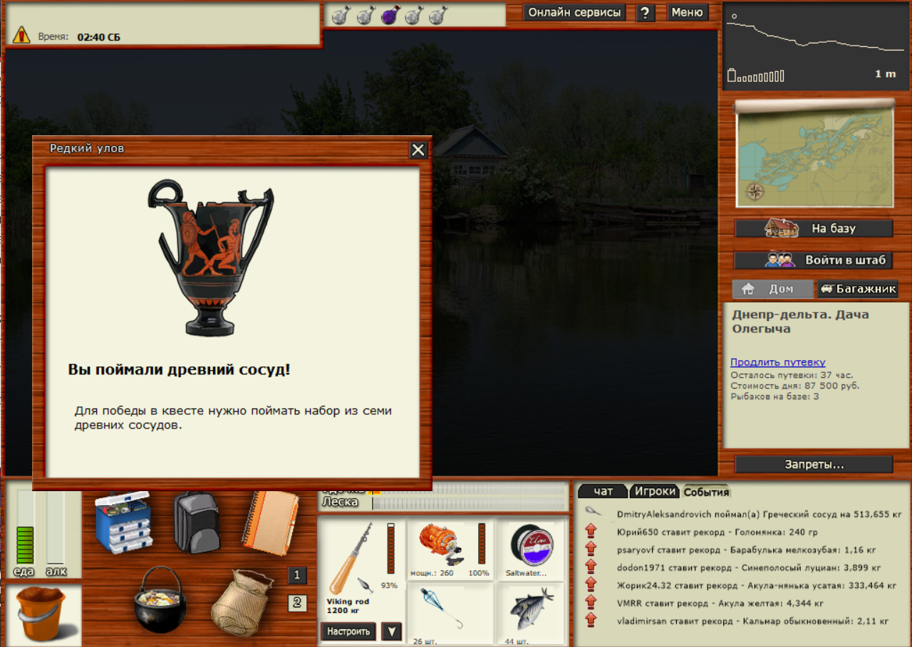 сосуд 5 (последний в квесте) Прошло 2-е игросуток на других серваках. Вновь вернулся на третийц - и вуаля: Днепр-дельта. Дача Олегыча. 2-69 уда-леска на БЖ под удачу и прикорм жм-БЖ-карамель. квест закрыт)