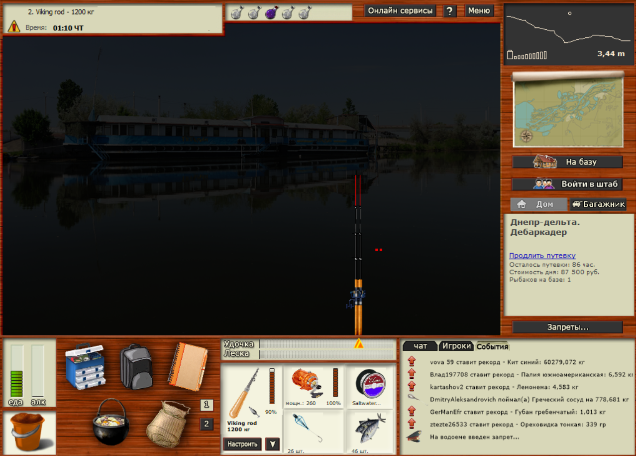 сосуд 6 Днепр-дельта. Дебаркадер. 3-44 леска (левая) на БЖ. 3 сервер за несколько игрочасов под удачу и прикорм жм-БЖ-карамель
