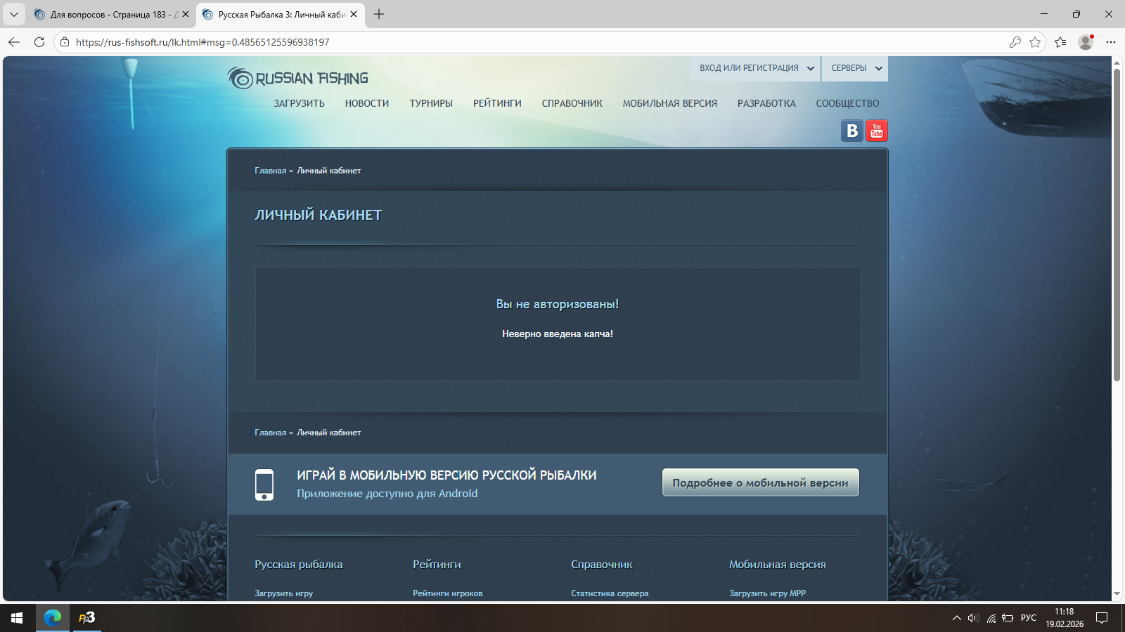 Максимус Опубликовано 19 февраля Опубликовано 19 февраля 34 минуты назад, BaBo сказал: Добрый день. Не могу войти в личный кабинет. При вводе данных выдаёт такую картинку, раньше такого не было. Что делать? https://rus-fishsoft.ru/forum/index.php?/topic/232-регистрация-аккаунта-на-сайте-рр/page/10/#findComment-519109 Цитата