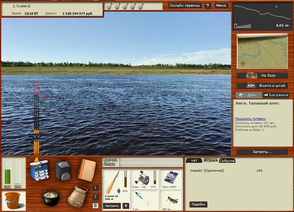 Байрон33 Опубликовано 15 июня, 2011 Опубликовано 15 июня, 2011 Пробовал ловить на разных локах,но ни в какое сравнение не идут другие места с Майгунгна:Изгиб у Каменных столбов. Там слева,почти рядом с берегом,есть ямка 304.Вот туда и забрасываем все три уды.Наживка:кузнечик.Ловить исключительно со дна!И будет Вам счастье:клюет словно из пулемета и много зачета. Стоит зачет в среднем 1500-1600 руб.Что касается опыта,то в среднем за 195 гр идет 32 опыта. Удачи! 7 Цитата