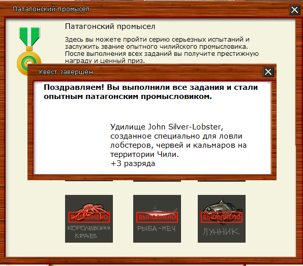 Балтиец Опубликовано 2 февраля, 2021 Опубликовано 2 февраля, 2021 Ну вот и всё, промысыл закрыт Закрывал лещами: Кинжальный - Плавающие льды, 5.21 рюкзак-блокнот, дно, икра, ночь. Белый - Зелёный залив, 7.73 шкала уды, кусочки, нахлыст, утро-вечер. Морской - Зелёный залив, 7.67 уда, живец, дно, круглосуточно. Спойлер Всё отловлено за полтора игродня (в первый не получилось отловить всех кинжалов, доловил на следующую ночь). Ловил на 1-м сервере, на локфиши, с химии - традиционная удача. Всем удачи в закрытии промысла, а я на Нил душить жирафов))) С уважением, БНК 1 Цитата