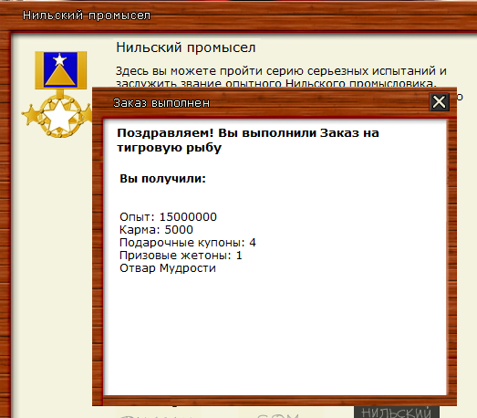 ЪУЪ Опубликовано 20 октября Опубликовано 20 октября Вы неправильно поняли задание. Закрыть задание в промысле можно двумя способами: 1. Поймать ОДНУ тигровую рыбу обыкновенную любого веса. 2. Поймать ДЕСЯТЬ тигровых рыб нильских не менее 10 кг каждая. Можно было сдавать задание после поимки одной тигровой рыбы обыкновенной. Но за старание "лайк, подписка, колокольчик" )) Цитата