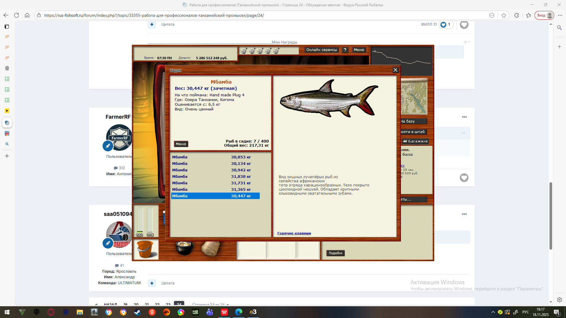Vitalys 1 Опубликовано 14 декабря, 2024 Опубликовано 14 декабря, 2024 Закрыл Цихлид. Все оказалось просто. Надо было найти нужную вращалку, но про неё на форуме ни кто не писал (вообще разлавливал Мбамбу) - Circl-moryanka, бол. сред. проводка. Кигиома. Ранее нашел три дорожки и кидал по ним, за 3 игр. дня выловил. Цитата
