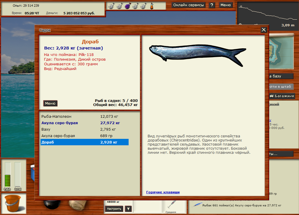Kord57 Опубликовано 30 апреля, 2021 Опубликовано 30 апреля, 2021 (изменено) И даже не думал, что мой пост будет первым. Ну, да ладно, признаюсь, не ловил я дораба целенаправленно. Сам пришёл. Коромандельскую акулу вымучивал, надоело гонять её на сухую. Вот с первым отваром суперудачи и пришла эта полинезийская диковина. Дадено 1040 очков редкости. Дорожка 14.58 над игроками, блесна большая, проводка средняя, уда с кракеном. Остальное на скрине. Спойлер Изменено 30 апреля, 2021 пользователем Kord57 3 Цитата