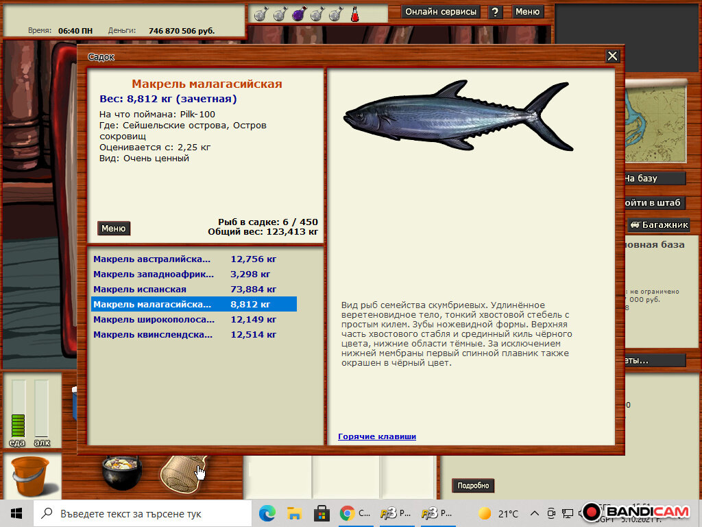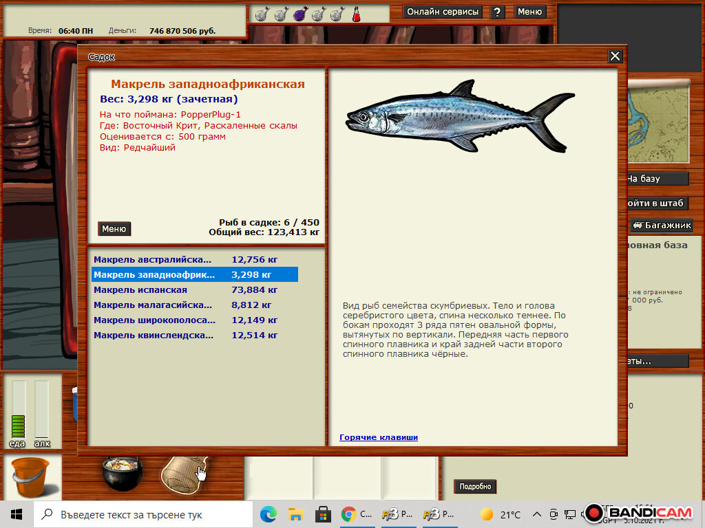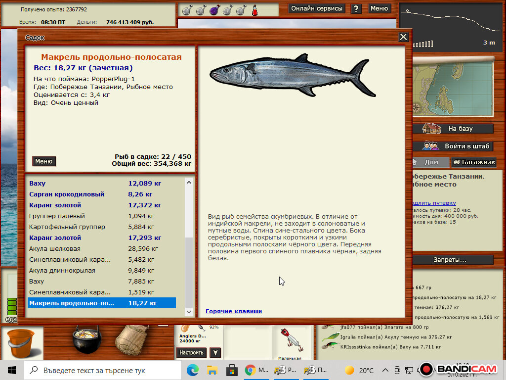 VARAL Опубликовано 5 октября, 2021 Опубликовано 5 октября, 2021 В 04.10.2021 в 11:29, Кладалов007 сказал: Всем привет. Добавлю Макрель продольно-полосатая 18,106 кг. Поймана на Побережье Танзании: Рыбное место, Creatures-07. Мал.медл 15.85 над алкоголем. Удачи всем в поимке) в какое время поймал? Цитата
