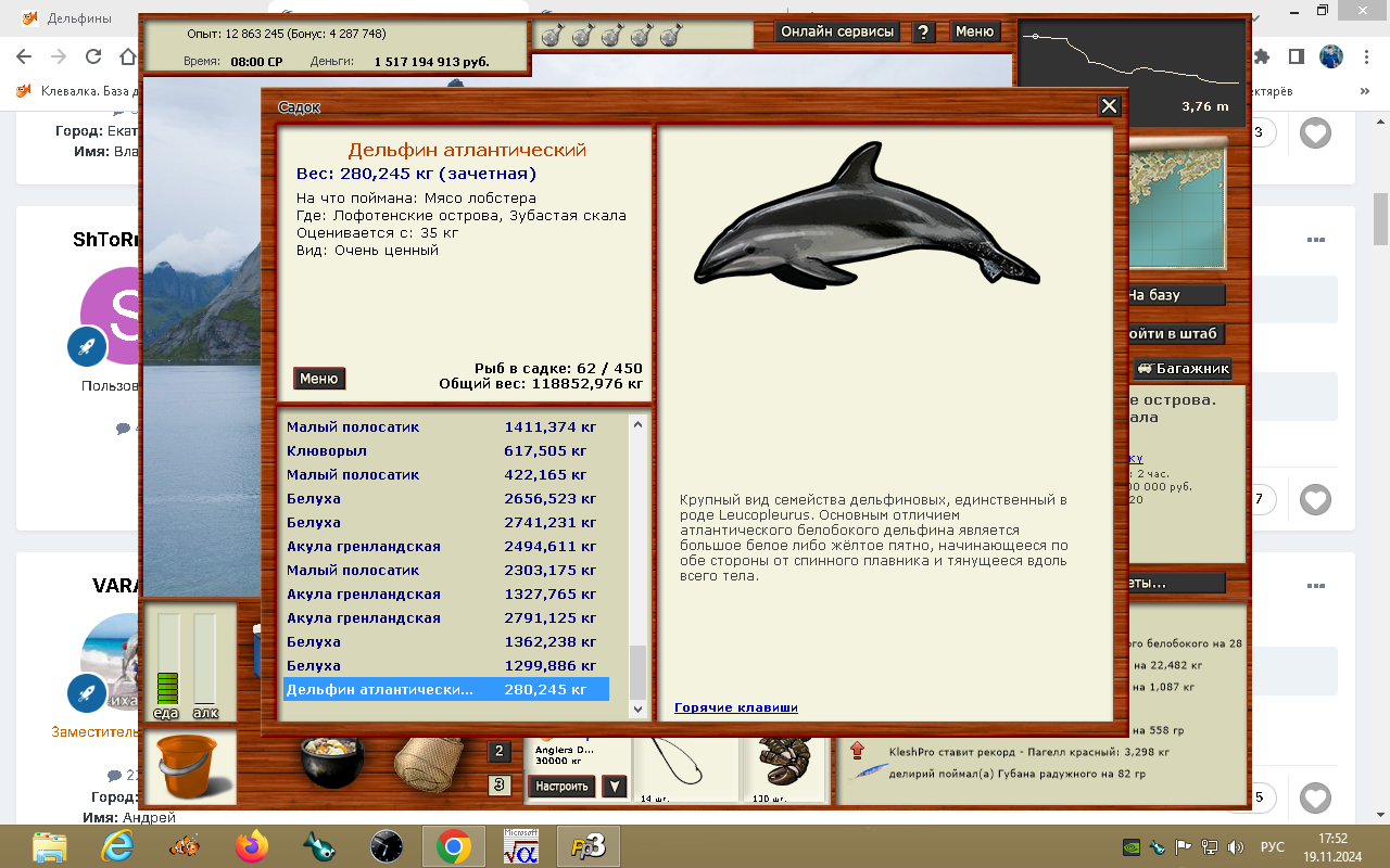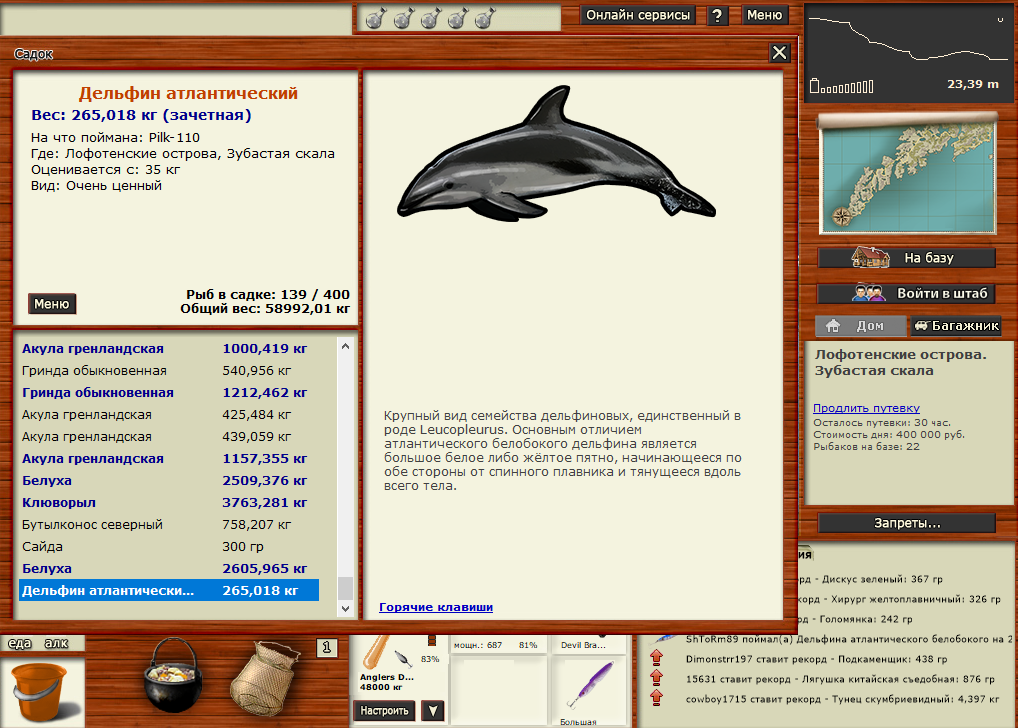 PENZA67 Опубликовано 16 января Опубликовано 16 января (изменено) Дельфин атлантический белобокий 273,731 кг. Поймана на Лофотенские острова: Зубастая скала, Мясо каракатицы.22.06 события около 22:00 Изменено 16 января пользователем PENZA67 Цитата