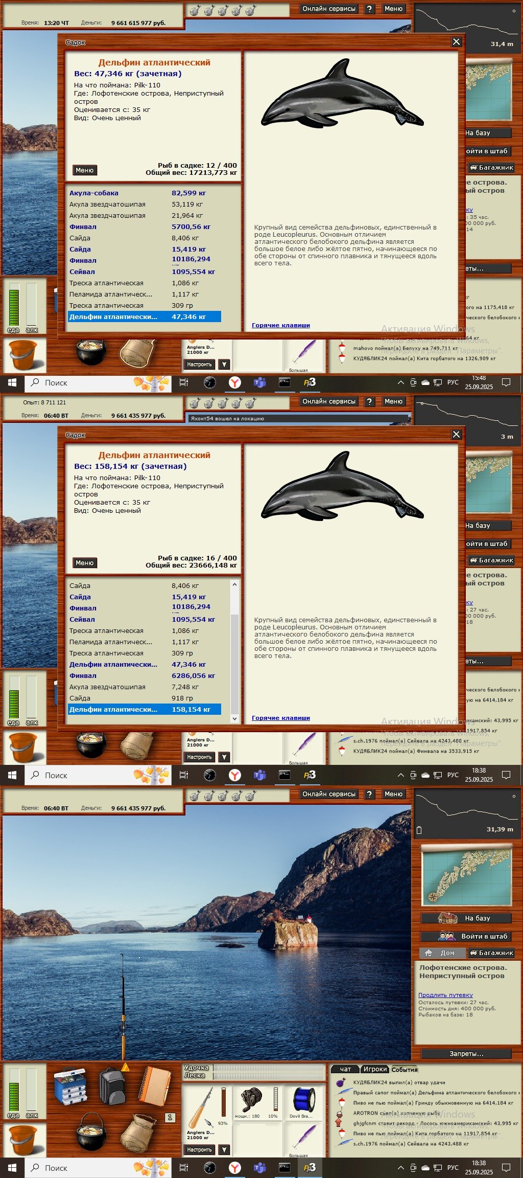 McKey Опубликовано 20 декабря, 2024 Опубликовано 20 декабря, 2024 Дельфин атлантический белобокий 285,674 кг. Поймана на Лофотенские острова: Неприступный остров, Мясо каракатицы. яма:25,93 (игроки) нахлыст 05:50 Вт , опыт - 8 741 624 McKey ставит рекорд - Дельфин атлантический белобокий: 285,674 кг Дельфин атлантический белобокий 282,613 кг. Поймана на Лофотенские острова: Неприступный остров, Мясо каракатицы. яма:25,93 (игроки) нахлыст 06:40 Вт , опыт - 8 647 957 Сразу два клюнули, на шестой день поисков. Цитата