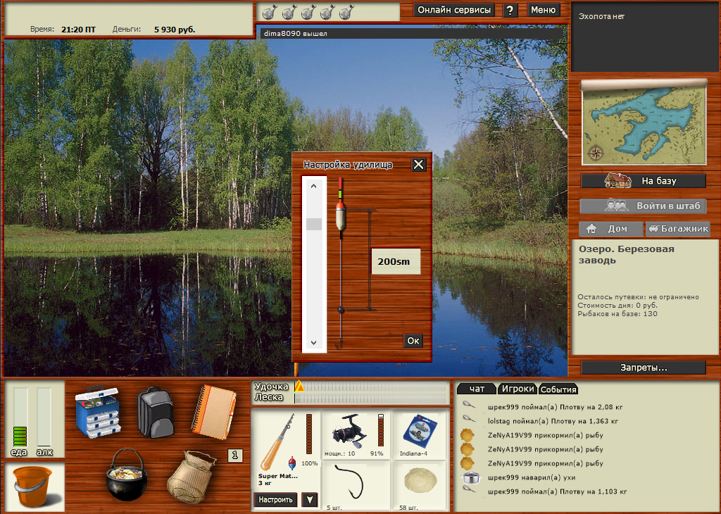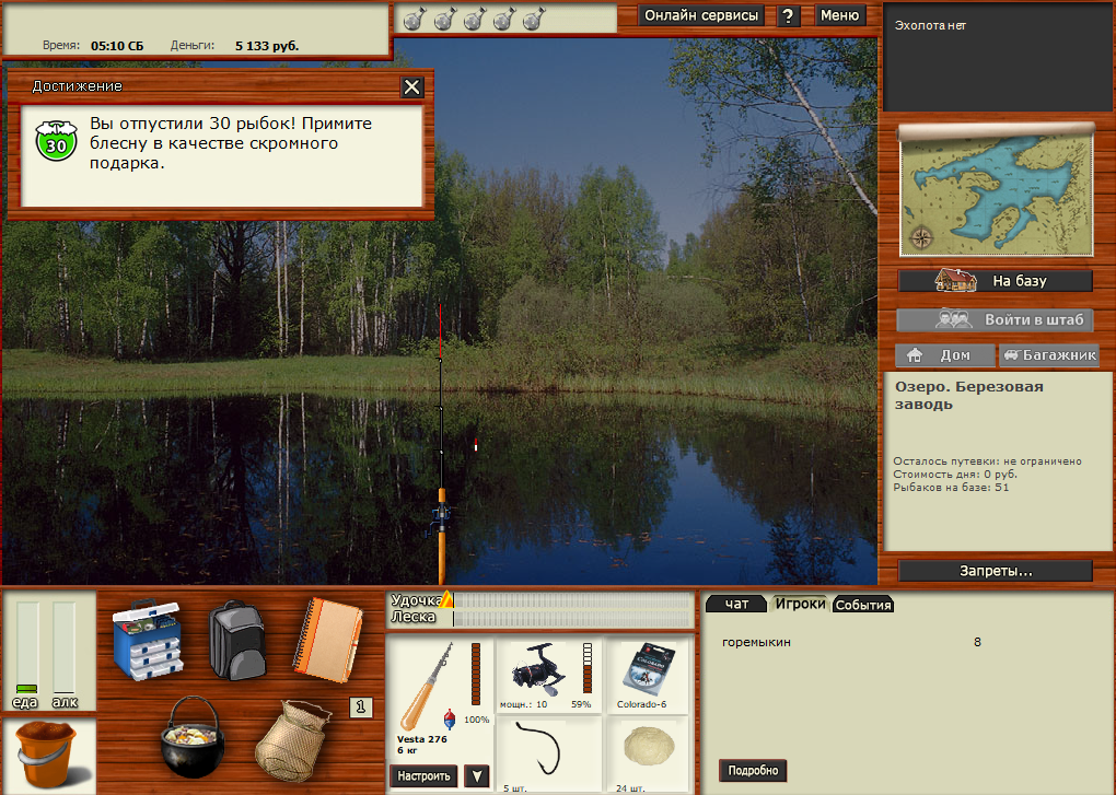 UTP Опубликовано 28 февраля, 2018 Опубликовано 28 февраля, 2018 (изменено) Итак, по теме. Замечу, что все, что пишу, является моим ИМХО, т.е. сугубо личным мнением. Вы отловили свою первую зачетную плотву ( или две, если воспользовались хитростью), а следовательно имеете начальный капитал. Вопрос встает ребром: что делать дальше. Вариантов множество. но для себя я выбрал ток один: Северный берег. Почему? Объясняю. Тут ловится самая дорогая для новичка рыба весом не более 3 кг, а именно: плотва, красноперка, елец. Незачет отправляем на живца. зачет продаем. Скрытый текст Наша основная задача: поднять денег на покупку эхолота, подсачека, ну и хай с ней лопаты (червя то всегда накопать можно). Вообще первым делом покупаем подсачек, ибо нужная вещь, как ни крути. И в конечной подводке рыбы любого веса на начальном этапе крайне необходимая вещь, ну и учит автоматом пользовать нужную клавишу. Первым делом на Северном берегу ставим наживкой или червя, или мотыля. Для чего? Что бы словить 5-10 видов рыбы. Получили бонус? Замечательно. Далее, у нас начинаются растраты. Если нет подсачека покупаем его. Ну и, закупаем наживку: ручейника. Дороговато, но он того стоит. У нас как раз время к вечеру. За день вы нашли свою "ямку", где у вас раз в 10 игровых минут , но поклевка есть. Вот туда и закидываем свою снасть на ручейника. Я разлавливал ямку, или развал к ней ( без эхолота не разберешь): Скрытый текст Замечу, что наше игровое время в основном с 19-00 по 10-00 игрового времени. Клюет реже, но клюет в основном зачет. В остальное время идет разлов "ямки", ну и живца делаем, он нам пригодится во всех отношениях. Мои рекомендации: не закидывайте снасть в левую часть локации, там много зацепов, а терять крючки и прочее нам не с руки. Не кидайте в правую часть, там ямок меньше, а может и не знаю чего... Я ловлю по середине локации; чистый подвод, есть свалы. Ручейник, при стоимости в 900+ монет, себя оправдывает с первым же зачетным Ельцом или Плотвой. Но больше денег все же приносит Красноперка. На нашем с вами разряде (до 15-го) можно не смотреть на цены на рыбу. Хаи плотву ловят на уху или на наживку, следовательно не сдают ее в Магазин, а нам цена вполне себе ничего. Заработать за ночь от 10к игровых вполне реально) Ну и запаситесь провизией) Я покупаю рыбные консервы: не дорого и хватает на треть дня. И не спешите покидать Озеро, оно вам предоставит столько всяких возможностей, что вы просто и легко, не тратив на путевки денег, сможете расти в уровне и благосостоянии. Ну и море кайфа))))) Как только соберем на эхолот и денег хотя бы 50к пойдем ловить раков)))) Изменено 28 февраля, 2018 пользователем himickplick1 Установка спойлера Цитата