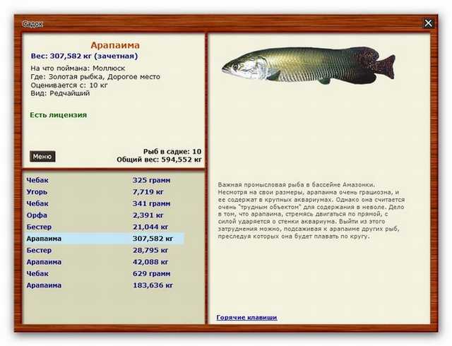 профи Опубликовано 30 сентября, 2010 Опубликовано 30 сентября, 2010 Арапаима Максимальная длина, см.: 550 Максимальный вес, кг.: 350 Описание рыбы: Пресноводная рыба подотряда костеязычных, известна в Бразилии под названием пираруку и является также одной из крупнейших современных пресноводных рыб. Рыба не имеет конкуренции за жизненные ресурсы ввиду уникального механизма адаптации — арапайма может дышать воздухом из-за ткани, похожей на лёгочную ткань, которая выстилает глотку и плавательный пузырь Ареал обитания: Южная Америка, Азия, всвязи с быстрым ростом арапаима считается перспективным объектом прудового рыбоводства. Рацион: Питается рыбой и другими мелкими животными, включая птиц Защита вида в природе: Вид Арапаима занесён в международную Красную Книгу